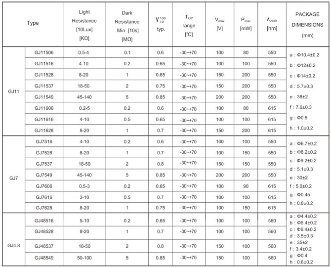 RoHS Compliance Photocells Series