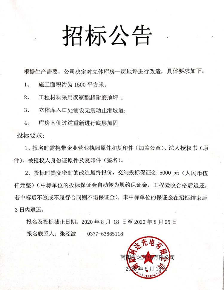立體庫房一層地坪改造招標(biāo)公告